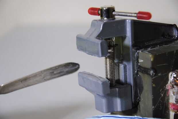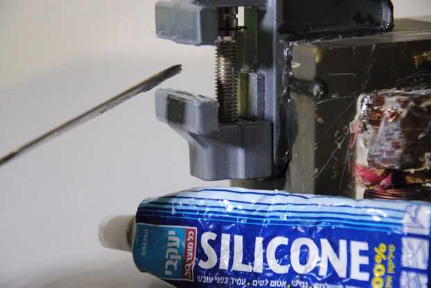 Quería asegurarse de que la empuñadura en el PCB fue en su mejor momento, así que añadido aplastado una fina capa de adhesivo de silicona sobre el las mordazas de la prensa. Esto ayuda a añadir más fricción que hace que el PCB sentarse firmemente en las quijadas.