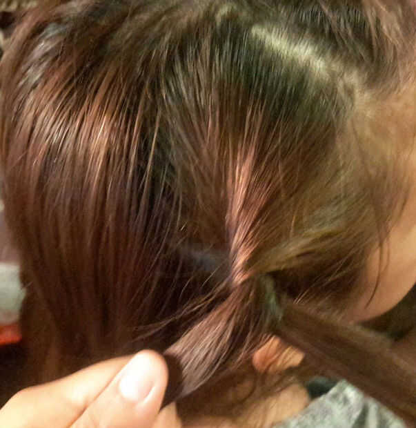 - Agarrar una pequeña sección 2-3 pulgadas desde el lado de su pelo más cercano a tu cara