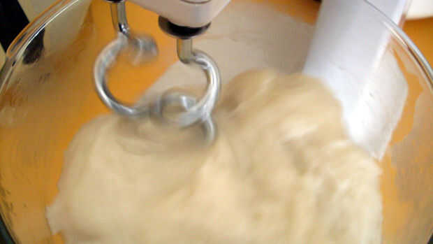 Coloque la masa al vapor en la mezcladora y amase durante 10 minutos con el accesorio de pasta.