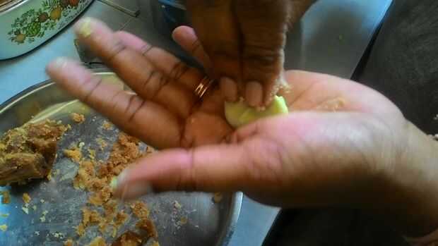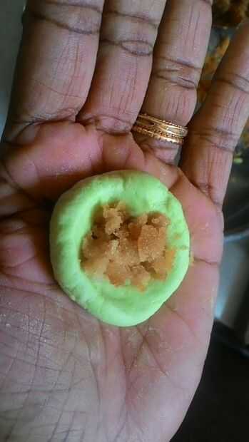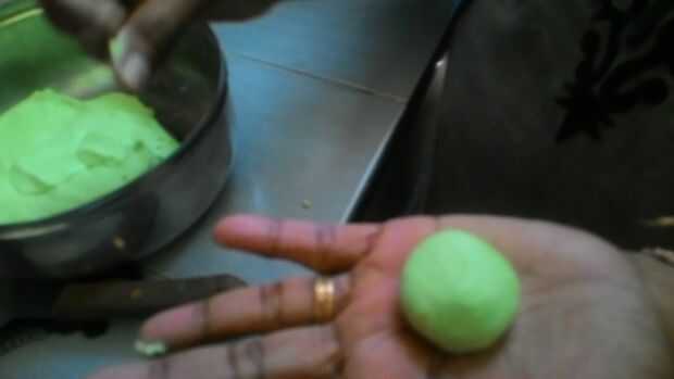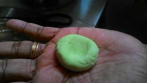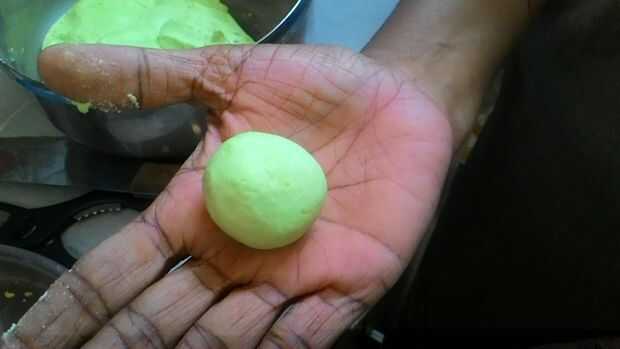 5. el rodillo otra vez para hacerla en forma de bola... Cerciórese de que allí no hay agujeros en el Doh que... prepararte para que el azúcar moreno no extendió al hervirla...