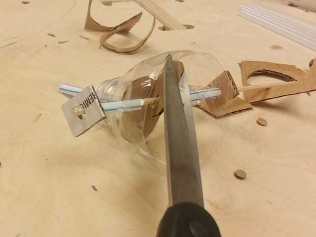 Prueba de la rotación, si el círculo de la cam es demasiado grande, puede que necesite modificar cortando más pequeños. Si se sumerge hacia abajo demasiado y golpea la mesa, corte una sección extra de su botella de agua y hacer su máquina taller. Mantener, modificar hasta que funcione como desee.