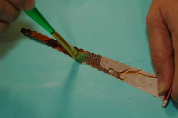 Usando el palillo del pegamento da un grano suave, blando, pero usando una combinación de pegamento palo y pegar archivo sólo para las puntas da un cordón sólido de papel maché.