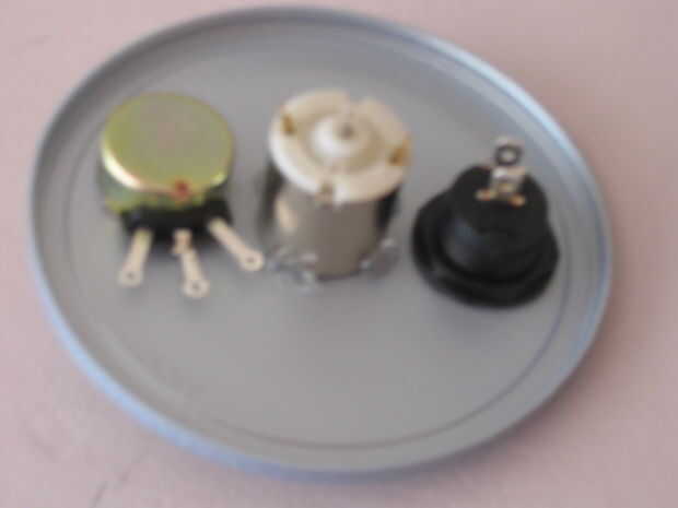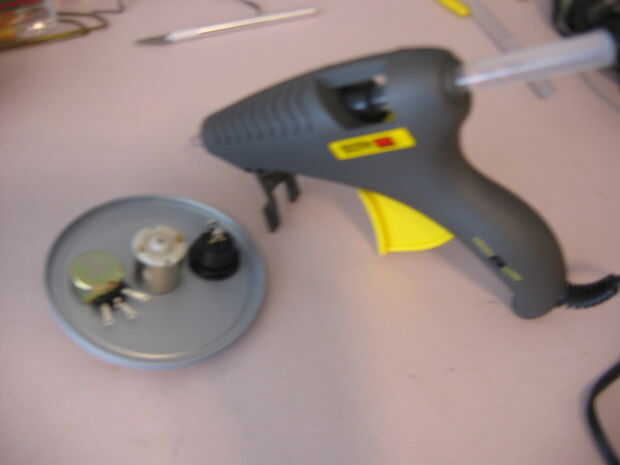 Ahora es el momento de ponerlo todo en su lugar. Primero querrá poner en el interruptor de eje de balancín y el reostato. Ambos vienen con tuercas por lo que se puede fijar en su lugar. El motor tendrá que acoplarse con la pistola de pegamento para sostener en lugar. Usar las fotos para ver cómo he orientado a todo.