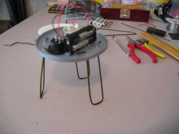 Usted querrá usar el arma de pegamento para asegurar los pies. Los pies deben señalar un poco. Eso es para asegurarse de que el ondulador no swing hacia fuera y los golpearon. Además, una amplia base será un poco más estable. Asegúrese de que usted no pega accidentalmente las pilas. La otra regla que tengo aquí es asegurar que usted puede conseguir el interruptor y el reostato. De lo contrario, tienen en él!