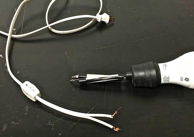 • Cuando estás seguro acerca de la conexión, enrosque el foco en la toma y prueba conectando el cable en un tomacorriente. Es importante asegurarse de que no sostenga la bombilla o el cable al hacerlo y dejar el bulbo en una superficie plana. (ya sea sobre una superficie mesa o el piso.)