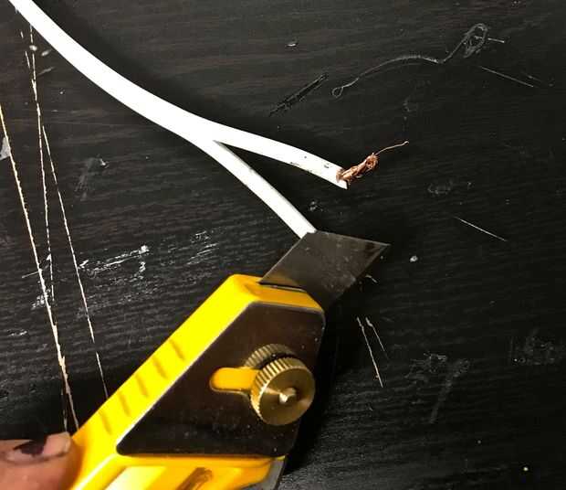 • Usando un cortador X-acto cuchillo o caja de corte la parte de aislamiento de goma de silicona de la médula para que el cable está expuesto.