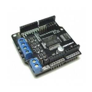 Este escudo del motor permite a Arduino controlar dos motores DC de canal. Utiliza un chip L298N que entrega canal de salida de corriente de hasta 2A cada uno. El control de velocidad se logra a través de PWM convencional que puede obtenerse de Arduino PWM de salida del Pin 5 y 6. Activar/desactivar la función de control del motor es señalada por Arduino Digital Pin 4 y 7.