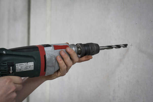 • Utiliza el dibujo técnico en el archivo adjunto para indicar la ubicación de los agujeros en la pared