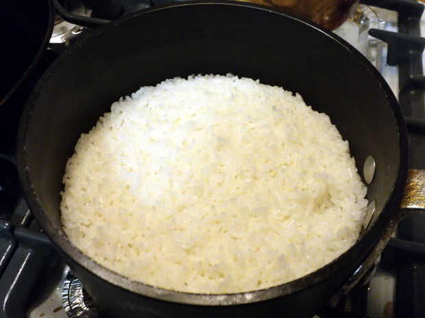 Añadir una cucharada de azúcar disuelta en dos cucharadas de vinagre de arroz para el arroz de la temporada. Agregar también un poco de sal para dar sabor.