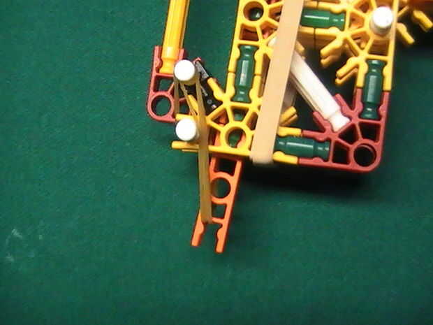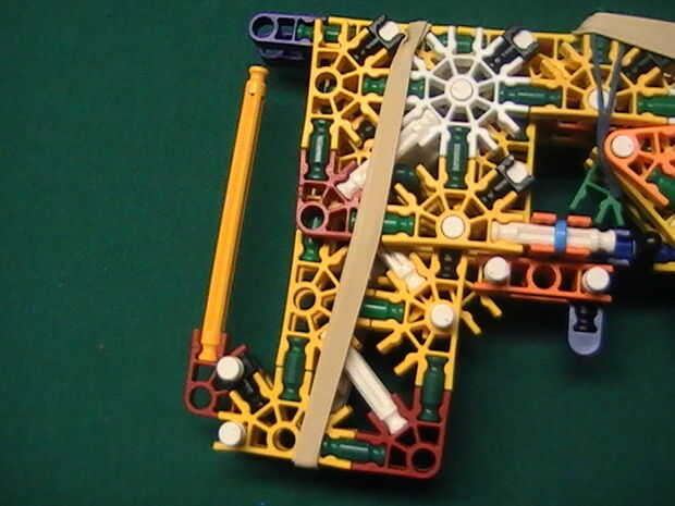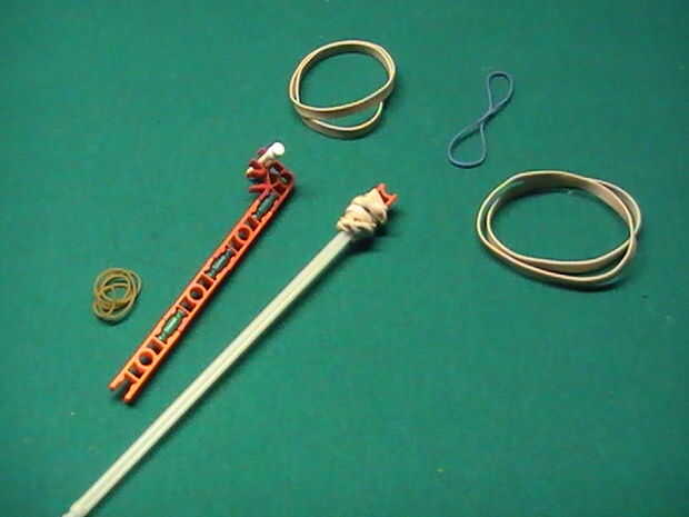 1. todo lo que necesitas. No sé qué tipo de gomas tiene uso tan sólo lo que funciona. El percutor tiene dos 64s # envuelto alrededor y frente a la naranja. No estoy seguro qué tan fuerte puede hacer que la pistola pero creo que la pistola le dará antes de la clavija.