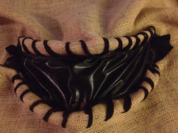 Luego dobla la parte superior de la punta, corte la forma de pico y había cosido con el hilo negro. Una vez que conocí la parte superior de la cabeza - área, relleno de algunas bolsas de plástico reciclados en allí para mantener la forma. Continuando con la máscara, coser la cabeza y el cuello cerrado, en el portador del traje, con habitación para él o ella lo despega. De esa manera sabes exactamente cómo firmemente a hacerlo. Se ha añadido un panel extra en la parte posterior de la máscara a algunos de mis "cierres de hilo" en la parte posterior del traje, que trabajó hacia fuera de la proyección. : D