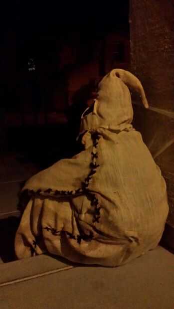 Esta máscara está diseñada para parecerse a Oogie Boogie de Disney Pesadilla antes de Navidad. El proyecto me tomó más tiempo de lo esperado en lugar de crear un mono envuelto un lazo de arpillera y vestido con atuendo de negocios. Puesto que Oogie B