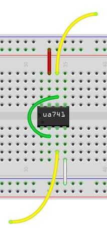 Construcción: Conectar el +-poder suministrar pernos al pin 7 (+) y pin 4 (-). Poner un cable de puente entre los pines 2 y 6. Conectar el pin 3 a la señal de entrada. PIN 6 es la salida. (imagen 2)