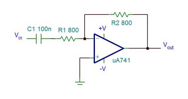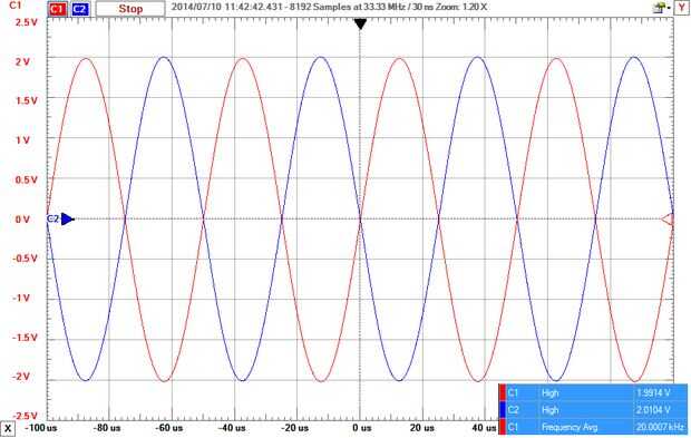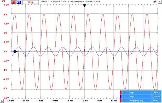 Construcción: Lo único que tienes que hacer es mover el condensador entre la señal y las resistencias de entrada. (Imagen 2) Imágenes 3, 4 y 5 muestran el efecto de que este circuito tiene la señal de 200Hz, 2kHz y 20kHz respectivamente.