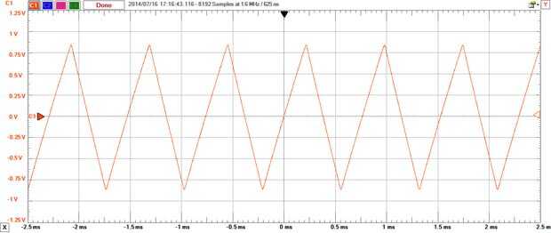 Imagen 3 muestra el resultado de la onda de triángulo la misma 1,3 kHz como antes.