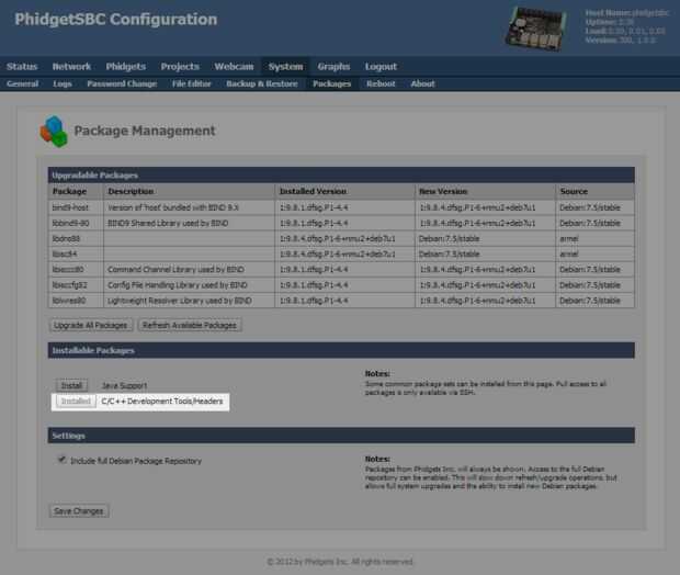 Para poder utilizar OpenCV en su SBC Phidgets primero deberá instalar las bibliotecas y archivos de desarrollo. Para ello necesitamos configurar la SBC un poco, como se ve en las primeras dos imágenes de arriba.