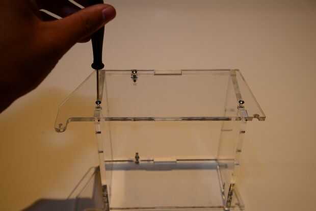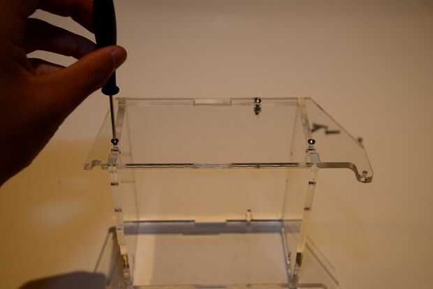 Conecte las placas laterales de la tapa, son idénticos. Atornillar la tapa.