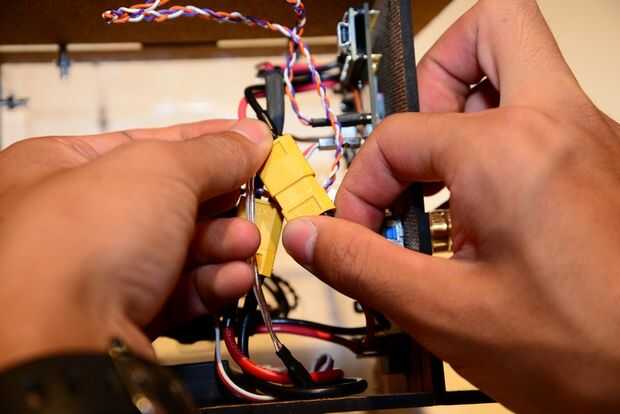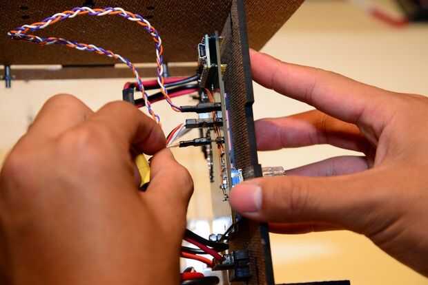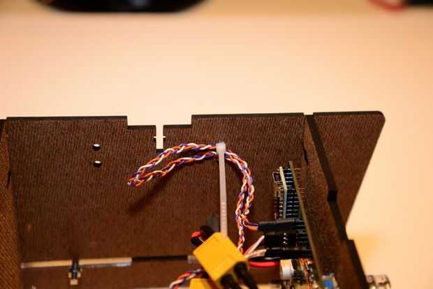 Simplemente conectar los cables como se muestra. Si lo desea, amarra cables rebeldes con los agujeros de montaje en la placa del marco izquierdo.