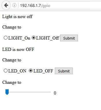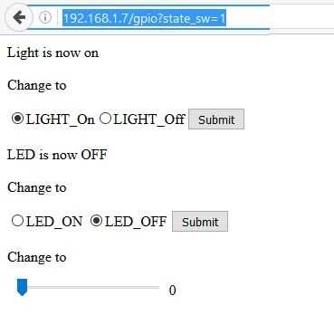 Antes de proceder a la configuración, permite destacar cierta información. Abrir la dirección IP del dispositivo en el explorador que desea utilizar en http. Como se muestra en la imagen de arriba por ejemplo que estamos tratando de controlar IP dirección 192.168.1.7, después de abrir esta usted puede verlo en la captura de pantalla, haga clic en el control GPIO hay el siguiente abre página donde podrás gpio de control, haga clic en ON o OFF botón al pulsar enviar sus muestran el vínculo URL para controlar el encendido o apagado según el botón ha hecho clic. Esto se puede ver en la imagen 3 donde se resalta la url. , es decir