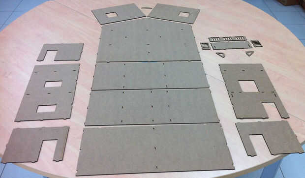 acrílico de 3 mm (se utiliza acrílico transparente y opaco) – aprox. 100 mm x 300 mm. Para algunos muebles (TV por ejemplo, acrílico de 2mm se aconseja pero 3mm puede trabajar demasiado)
