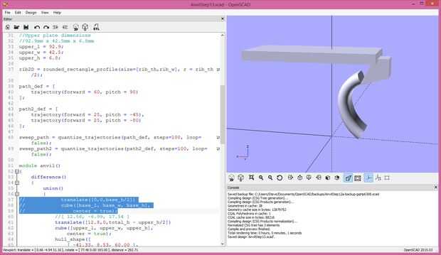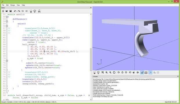 Ahora apagamos el STL y partes de la recreación OpenSCAD para afinar la articulación entre la costilla y el bloque de la nariz. Este es otro ejemplo del poder del casco. Utilizar el módulo de hull_shape con múltiples formas y se aplica una matriz que determina el punto en el que cada forma. Esto nos permite crear una superficie redonda que más o menos perfección las transiciones de la costilla a la nariz. Observe que ahora hay esferas en dos esquinas (cuatro después de aplica la simetría).