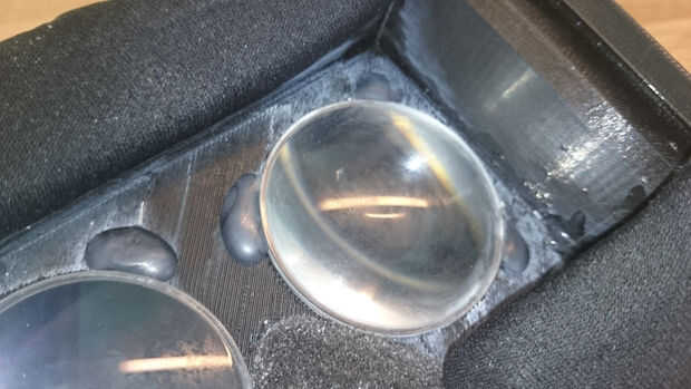 La primera y más sencilla es colocar lentes. Suavemente Coloque lentes en los agujeros en el caso de impresión 3D. Debería encajar derecho en lugar puesto que los agujeros están diseñados para sostener las lentes.