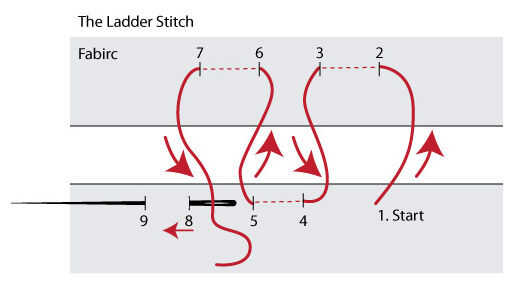 Vamos a acabar con algunos coser a mano. Vamos a utilizar la misma puntada de 'escalera' de ambos estilos.