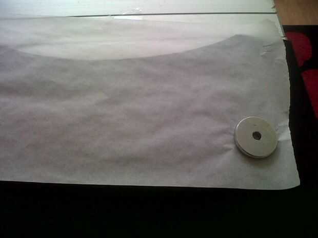 Encontrar el centro de su escote. Tome usted un pedazo de papel de trazado o pergamino de la hornada y colóquela sobre la tela en el escote.