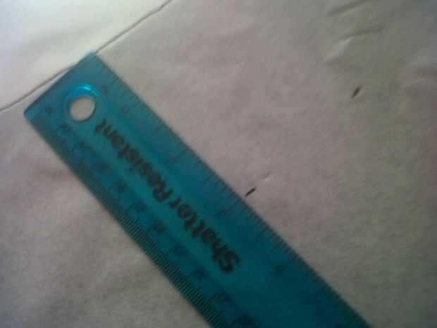 Trazar el contorno de la curva (desde el centro hacia el borde externo) de la línea del cuello en el papel. Decida la profundidad que desee el collar y utilizando una regla, marque la profundidad solicitada a lo largo de la línea curva. (Creo que mío era alrededor de 3 pulgadas).
