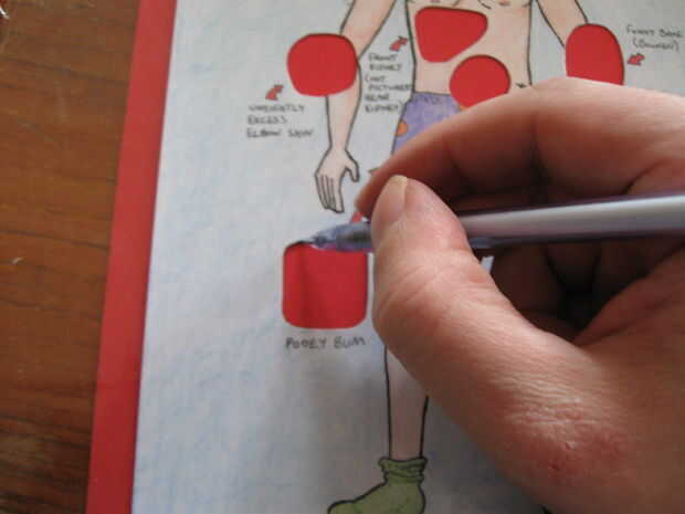 Ahora tienes el LED y el zumbador como puntos de anclaje para la imagen, así que agarra tu lápiz retráctil y trazar el resto de los agujeros en la imagen sobre la espuma de la diversión. Entonces siga adelante y cortar hacia fuera, ajuste según sea necesario.