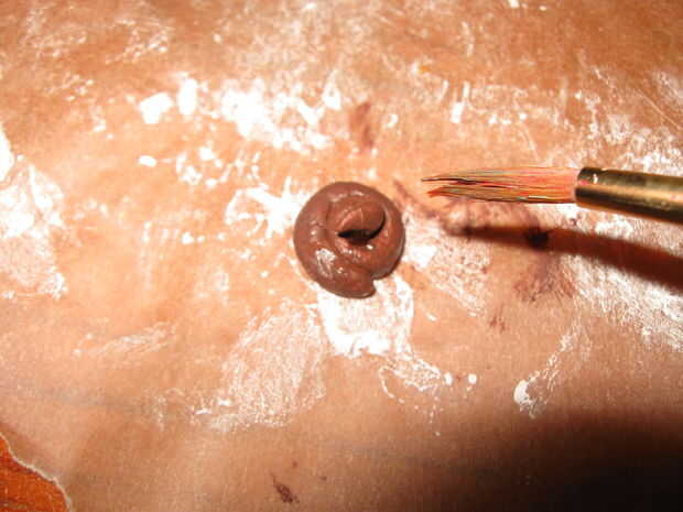 Cuando estaba seguro de que los aspectos más destacados fueron seco he añadido sombra mediante un lavado. Tomé algunos acrílico rojo y diluir con agua hasta que tuviera algo así como pintura de acuarela. Entonces cargué mi cepillo y había utilizado en las grietas de la oreja. Gracias al lavado ser delgada agota en las grietas y se seca, dejando una sombra efectiva.
