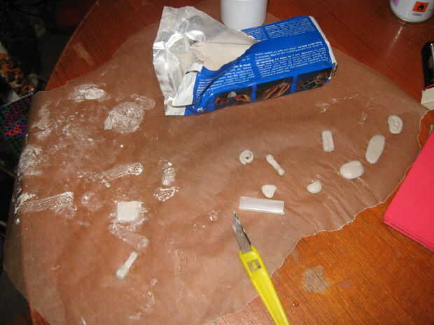 Si usted elige modelar tus propias piezas, asegúrese de que son del tamaño correcto. Ya que no tengo herramientas modeladas correcto, simplemente utiliza un bisturí. Afortunadamente la mayoría de las piezas fueron formas simples, pero el oído y el hueso divertido abajo, mientras más complejo al modelo, son sin duda los que estoy más orgulloso y que han llamado la atención la mayoría de personas que han visto el juego.