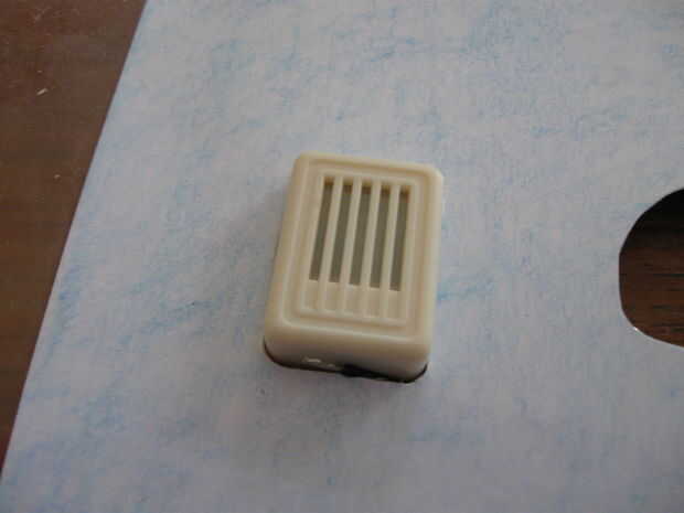 En esta etapa hice una decisión acerca de dónde colocar el timbre. Estos zumbadores poco no muy fuertes, por lo que realmente necesitan para meter a través de los mejores ejemplares. Una vez que había decidido dónde colocarlo - la parte superior izquierda del tablero - tengo un lápiz retráctil y había utilizado para trazar alrededor del borde del zumbador. Un lápiz retráctil es perfecto para este papel, ya que no deja una marca visible, pero el plomo es bastante difícil de dejar una marca para indicar donde tiene que cortar. Una cosa más - desde la base del zumbador es más grande que la parte superior, no te olvides de girar boca abajo cuando se dibujan alrededor de él!