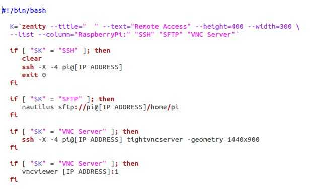 El programa zenity le da una interfaz gráfica de usuario para acceder a la RaspberryPi.