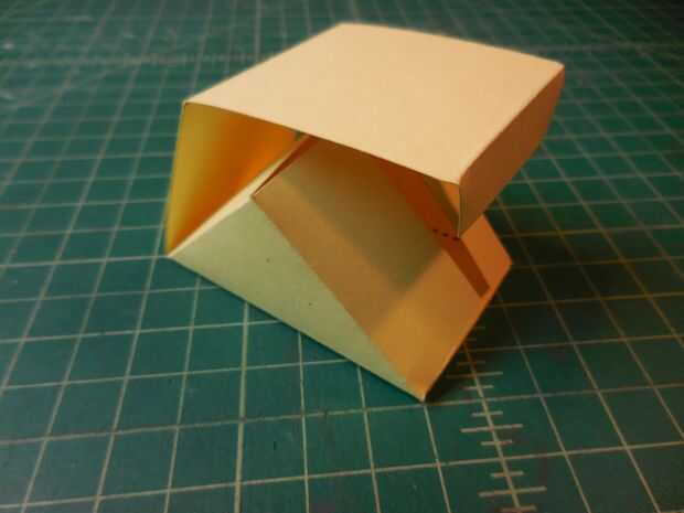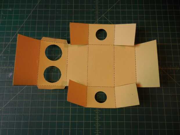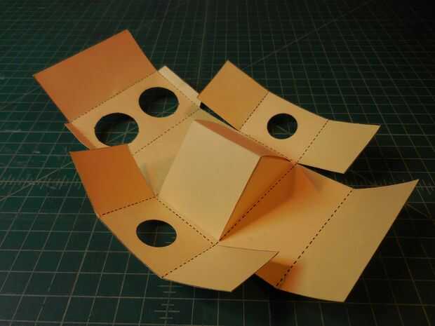 Dobla todas las líneas de puntos. Después de doblar la última ficha debe sostenerse. No es necesaria pegamento o cinta.