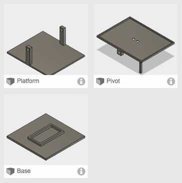 El marco de nuestro sistema fue creado con una impresora 3D. Había modelado tres componentes separados en fusión 360, había exportado como archivos .stl para impresión, les impreso y luego los había montado junto con algunos tornillos. El arco de la palanca que pivota el bastidor de soporte superior no sigue el mismo arco como los brazos de servo, así que tuvimos que apuntale el servo pulgadas un par de la cama del medio marco con un bloque pequeño de media pulgada de madera que pega a la parte superior del marco central. No dude de su propio marco que mejora nuestro diseño diseño!
