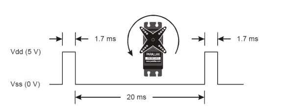 La interfaz del controlador del servo es muy simple. BTN_0 y BTN_1 son señales permiten que el servo que manera de convertir. En la arquitectura de servo_driver, BTN_0 y BTN_1 se ponen a través de alguna lógica para obtener un valor de DIR que es alimentada en pwm_control. pwm_control a continuación, crea una señal pwm según la dirección que queremos que el servo para viajar. En el caso de los servos, una onda cuadrada con un ancho de 1,5 milisegundos con un período de baja de 20 ms si paró. Nada hará que onda por encima de 1,5 ms el servo empezar a mover hacia la izquierda. Cualquier cosa por debajo de 1,5 hará que el servo mover las agujas del reloj. En nuestro caso, queríamos que los servos se mueven bastante lentamente así que tuvimos una onda cuadrada de 1,52 ms para el movimiento de la izquierda y una onda cuadrada de 1,48 ms para el movimiento de cw. En cuanto a nuestro divisor de reloj, queríamos que nuestro conductor servo para recibir una señal de reloj que tenía un período de apenas un microsegundo. La placa Basys tiene una velocidad de reloj por defecto de 100 Mhz, por lo que dividimos el reloj por 100 en el divisor del reloj con el fin de lograr una frecuencia de 1 Mhz (1/1 Mhz es de 1 microsegundo).