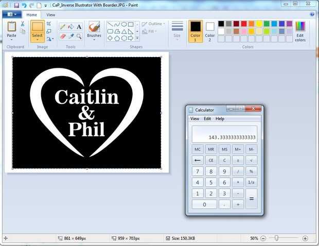 En el ejemplo adjunto, el tamaño de la caja de selección es 861px x 649px. Desde el tamaño de la obra de arte fue creado y pretende ser salida como 6 pulgadas de ancho por 4,5 pulgadas de alto, uno puede dividir 861 píxeles por 6 pulgadas y calcular que la resolución de este gráfico es de unos 143 píxeles por pulgada. Si utiliza este método de captura de pantalla de MS Paint, calcular este valor para su imagen porque se necesita dos pasos a partir de ahora.