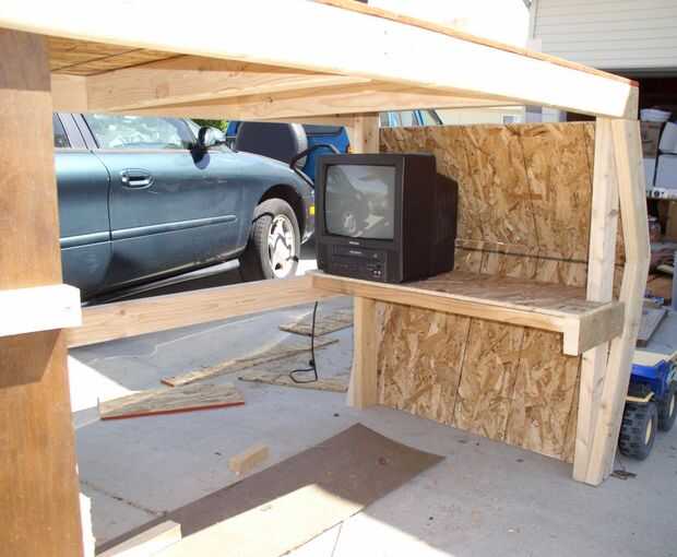HERES otra cama que hice pero tomar mucho de fotos durante la construcción así que ID al menos mostrar algunas fotos acabadas.SÍ ESTO ES ENORME!76" DE ALTURA96" DE LARGO48" ANCHOEL PASO DE LA PARTE INFERIOR SE ABRE PARA UN MONTÓN DE ALMACEN