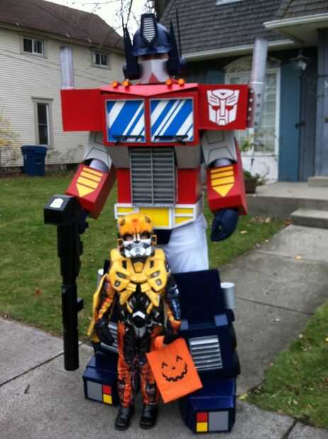 mientras viendo un episodio de 1984 clásicos animados "Transformers" con mi hijo de 4 años tuve un momento de locura. "Hey amigo," dije. "¿Quieres hacerte un traje de Optimus Prime para Halloween?" Fue como si me quité de mi