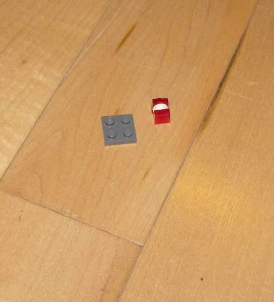 Tomar un trozo de gris 2 x 2 y dos piezas rojo con un círculo blanco en el centro de la pila.