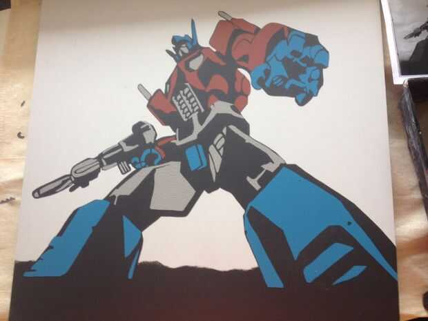 Esto es una plantilla que hice usando una técnica de frisket film. hacer una capa de color a la vez. Usé pintura de base agua supercover tiene un bajo contenido de plástico y es bueno para estarcir, he utilizado protector de piso como un sustituto de frisket film como su barato y tanto tiempo como su buena calidad funciona bastante bien. También usé publisher para imprimir el diseño original de la plantilla como su perfecto para la fabricación de la impresión el tamaño correcto para la placa/de la lona.
