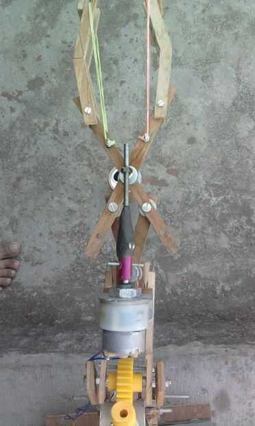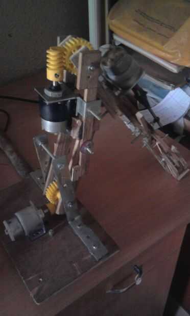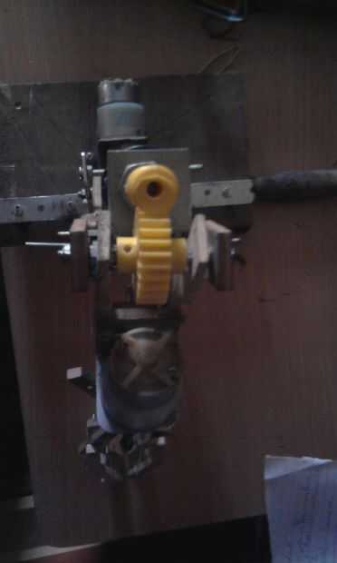 En el lado opuesto al cortador pick & place mecanismo del brazo se une por el motor de rpm 3,5 D.C. que se une a la madera contrachapada, perpendiculares tales que la rotación de pick & place del brazo será de 180 grados.