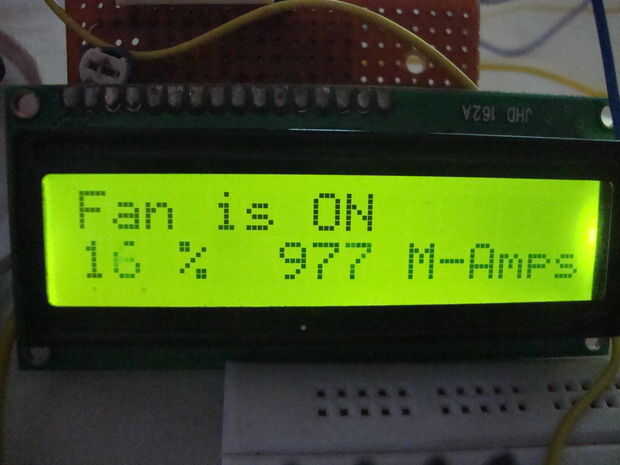 Aquí mido la corriente tomada por un fan de dc v 18 utilizando el opto aislador...