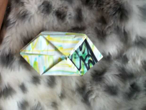 La primera vez oragami UFO. Mientras sólo fastidiando con un pedazo de papel oragami, he creado al azar, de ovnis, lo... No sé aún lo que es... Yo simplemente lo llamo un OVNI.Paso 1: yay... ... esto es muy difícil hacer un triángulo. Coincida con un