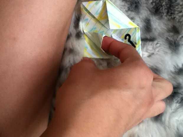 Tome la parte superior, asegúrese de que puede doblar la esquina. Doblar luego hacia abajo para efectuar un pequeño triángulo y luego de meter dedo ir en el bolsillo de triángulo y luego pegar el papel en su interior. Hacerlo a la otra esquina y luego dé vuelta el papel y hacer el mismo paso.