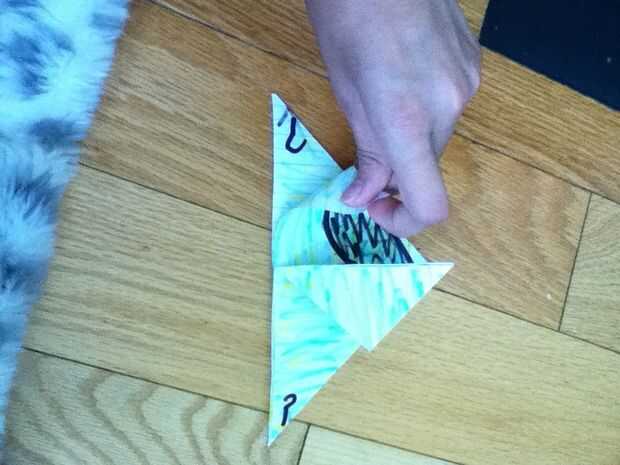 La primera vez oragami UFO. Mientras sólo fastidiando con un pedazo de papel oragami, he creado al azar, de ovnis, lo... No sé aún lo que es... Yo simplemente lo llamo un OVNI.Paso 1: yay... ... esto es muy difícil hacer un triángulo. Coincida con un