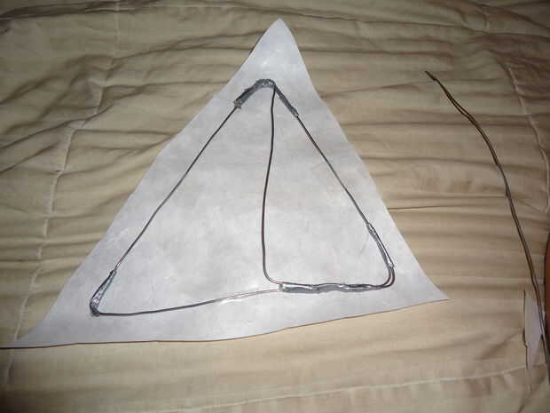 Tomar la longitud restante del alambre y alinear hacia abajo el centro del triángulo, cinta en el lugar.