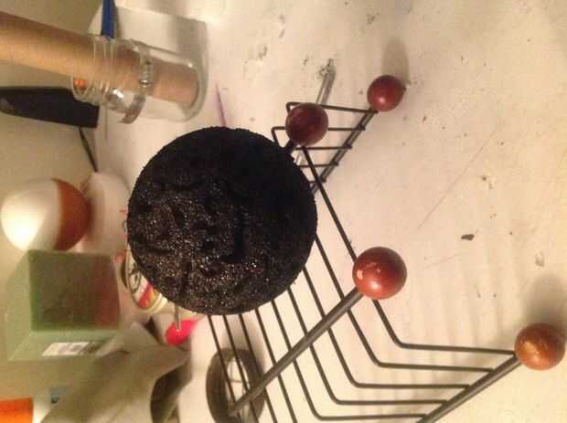 En esta parte están pintando a la bola todo negro. Uso lo que significa que desea, simplemente no la pintura de aerosol! Oigo que derretirá la espuma de poliestireno, no estoy seguro si eso es cierto pero no quería saber:-p. Sólo cargan poco de pintura en mi pistola de aerógrafo y se volvió loco. Conseguir la bola entera, sólo en caso de que te puedes perder un punto no será whyte y sensible.