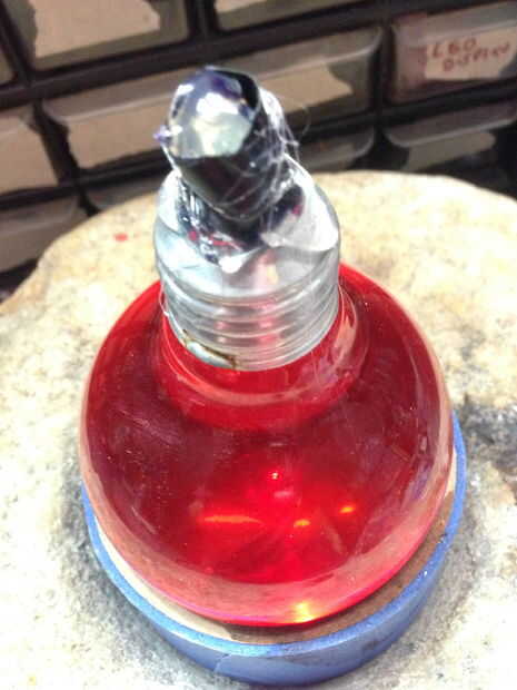 Simple colocar el LED en el bulbo y aplicar mucho pegamento y asegúrese de que hay espacios luego no envuelven en cinta